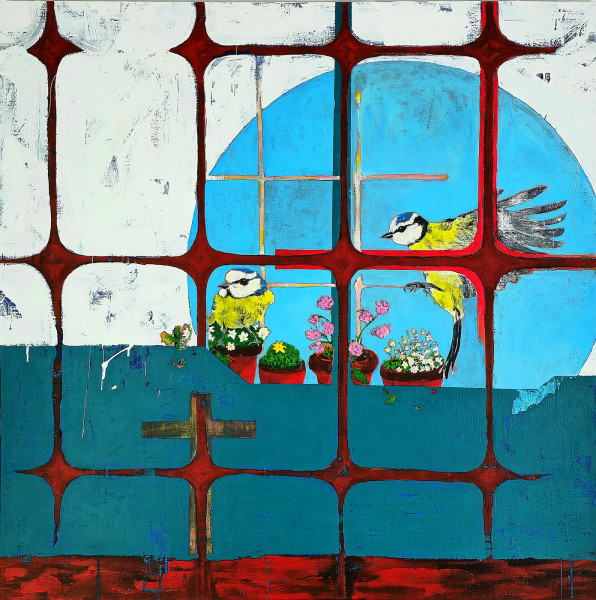 Rear Window, akryl na plátně, 105x105 cm, 2025